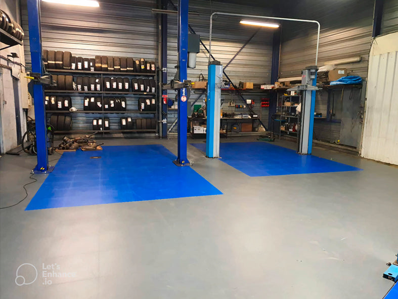 Auch ohne Vorbereitung eines beschädigten und rissigen Untergrunds lassen sich unsere PVC-Fliesen schnell und einfach verlegen und verwandeln Ihr Atelier in wenigen Stunden.