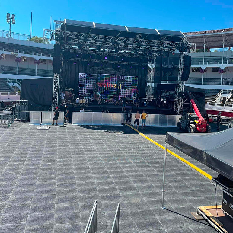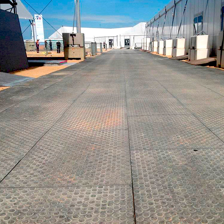🎪 Die Rollplatten werden auch als Basis für temporäre Plattformen verwendet und gewährleisten einen einfachen und sicheren Zugang zu Schlüsselbereichen.
