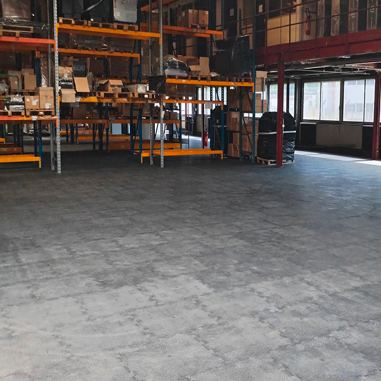 Le piastrelle Clip-in sono ideali per spazi interni come palazzetti dello sport, garage, officine o aree espositive. Offrono una duplice protezione: proteggono il pavimento sottostante, mentre la loro superficie antiscivolo le rende sicure e comode da calpestare.